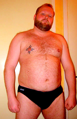 Men who are husky,beer bellied,chubby,few extra pounds hanging out of speedos,shorts,underwear.